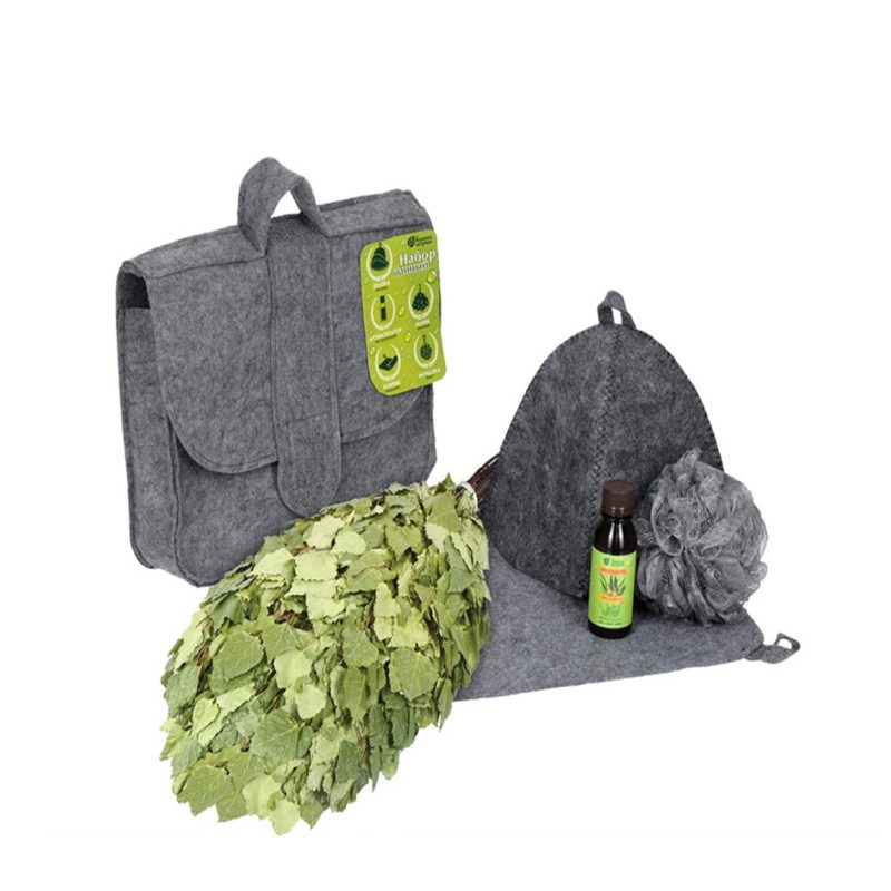 Набор для бани Банные штучки из 6 предметов – веник, шапка, сумка, коврик, масло, мочалка