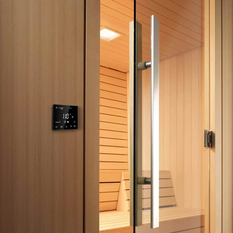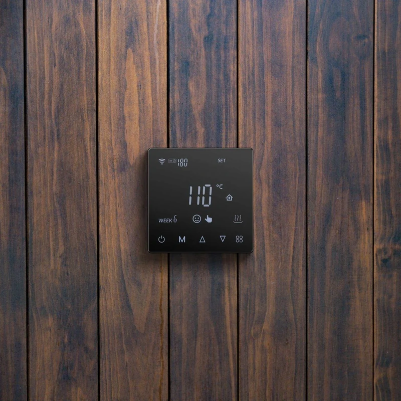 Пульт управления сауной Henki Smart Wi-Fi отличный вариант для саун в таких местах как частные дома, офисы, квартиры, жилые помещения и спортивные клубы. Используя наш контроллер для сауны и бани, вы можете нагревать сауну с панели управления на месте или со своего мобильного телефона, независимо от того, где вы находитесь в данный момент. Пульт управления печью сауны практически не занимает места благодаря своим компактным размерам и помещается в стандартный подразетник. Приложение на телефоне позволяет вам легко установить время начала и окончания нагрева, заданную температуру и проверить текущую температуру в сауне. Пульт управления для бани и сауны позволяет интегрироваться в систему умного дома и работать по Wi-Fi. Кроме того, вы получите уведомление, когда сауна нагреется и будет готова к использованию.