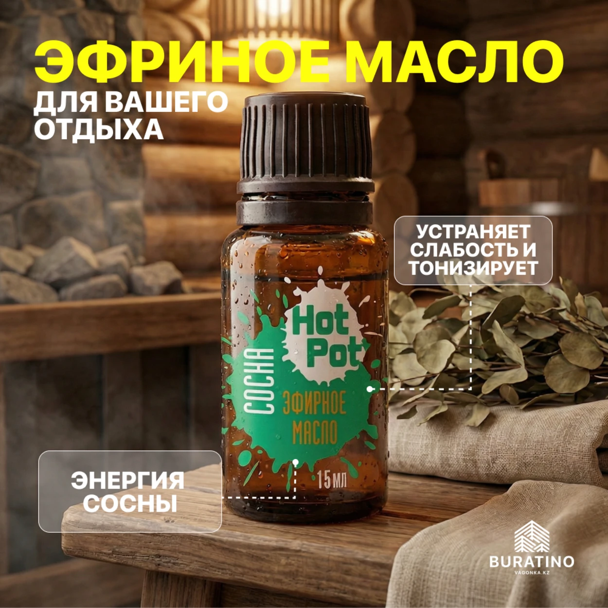 Эфирное масло «Сосна» от Hot Pot — идеальный выбор для тех, кто ценит качество и натуральность продуктов для ухода за своим здоровьем и хорошим самочувствием.