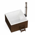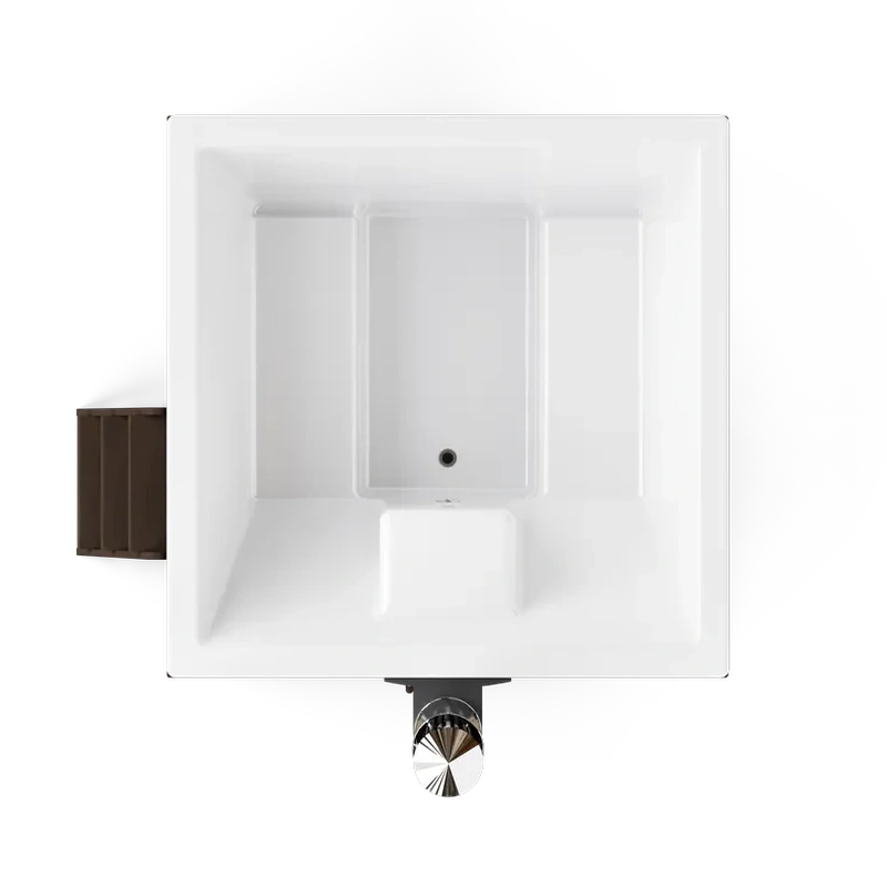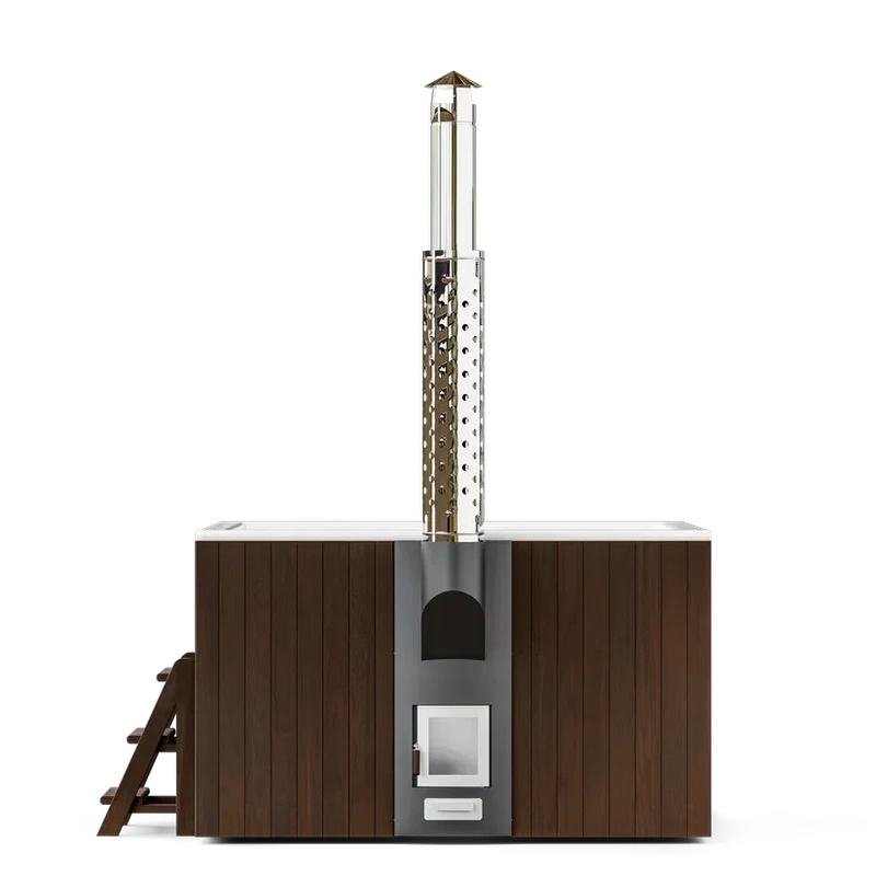 Купель можно использовать на улице при любой погоде. Изготовленная по нашему эксклюзивному проекту встроенная печь POLARSPA мощностью 35кВт нагревает воду за 1,5-2 часа до комфортной температуры. Печь абсолютно безопасна – защитный экран на дымоходе, жаропрочное стекло, никаких острых углов, а все технические коммуникации спрятаны внутри конструкции.