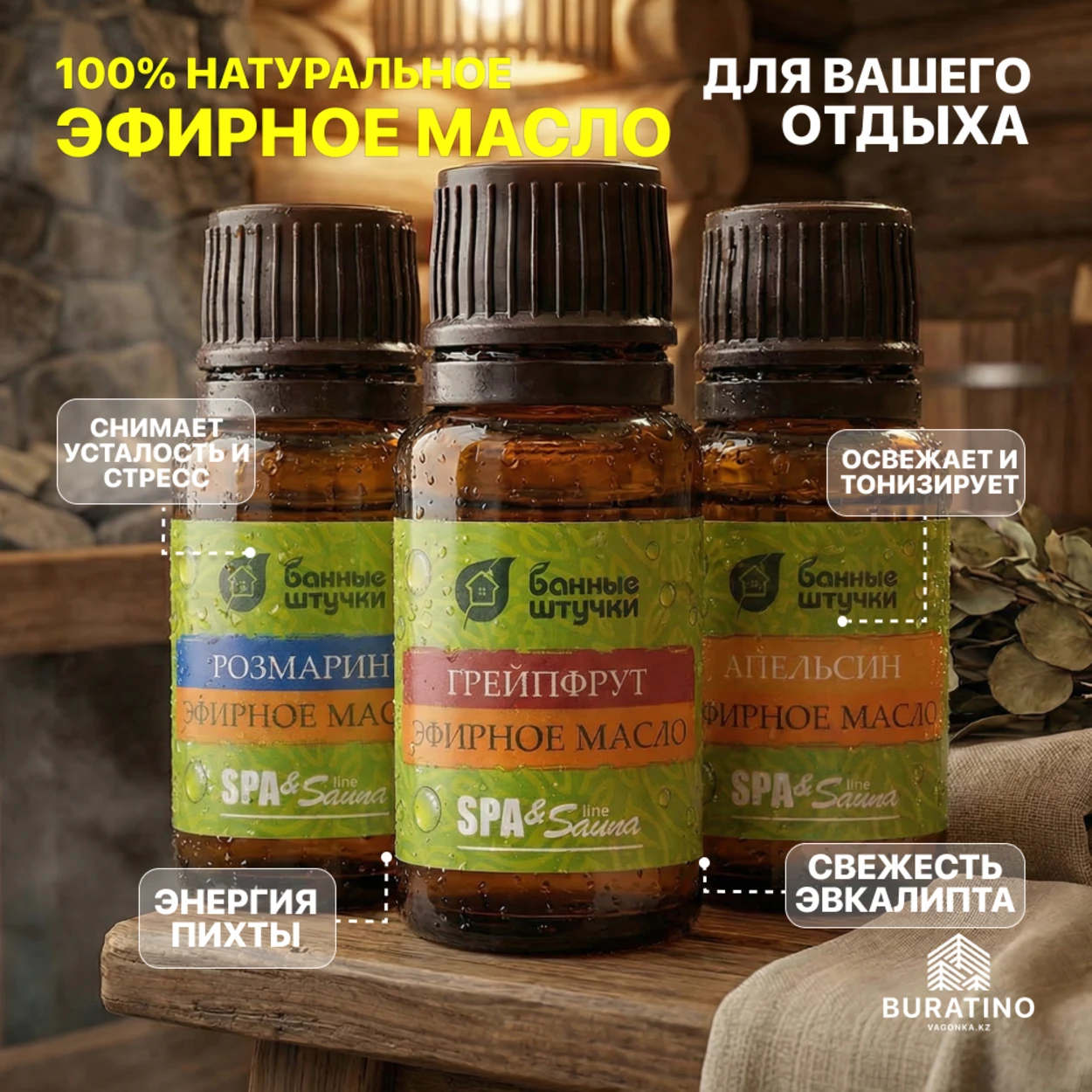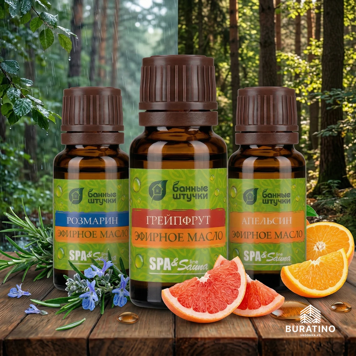 100% натуральные эфирные масла апельсина, грейпфрута, розмарина |
