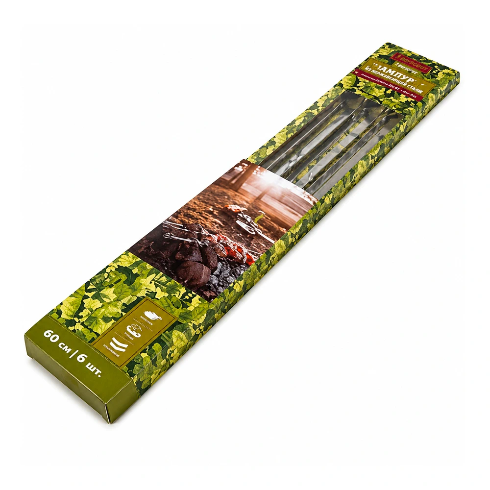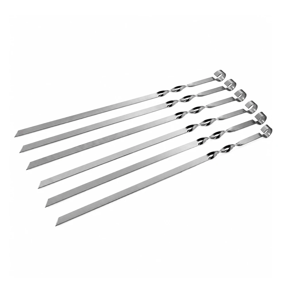 Практичный комплект шампуров для приготовления мяса, рыбы и овощей на мангале. Плоская форма надёжно фиксирует продукты и предотвращает их прокручивание во время жарки. Отличный выбор для дачи, пикников и отдыха на природе.