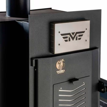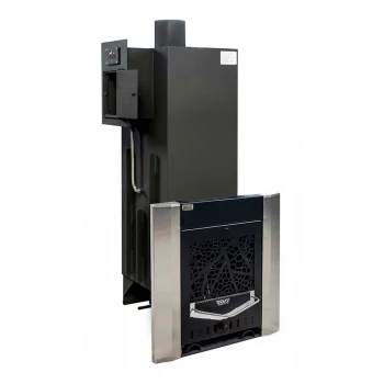 • Выносная топка с большой прозрачной стеклянной жаропрочной дверцей – настоящий камин в вашей комнате отдыха.