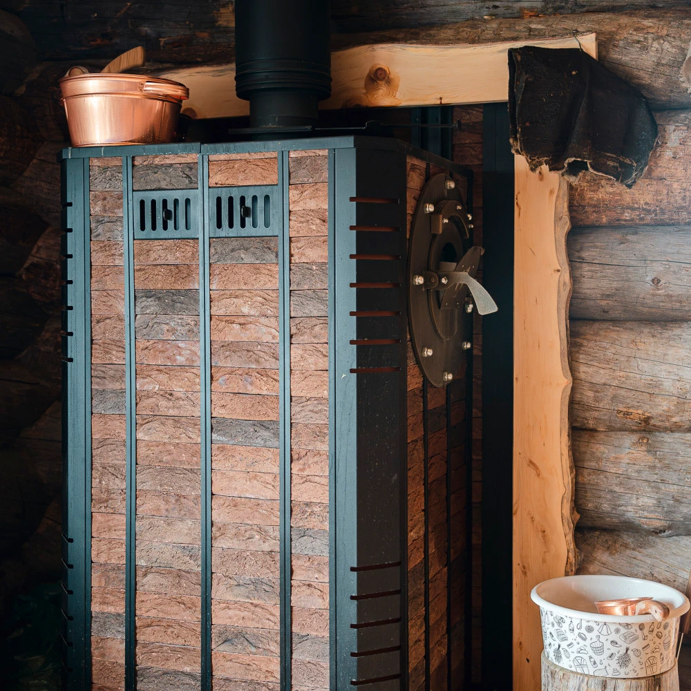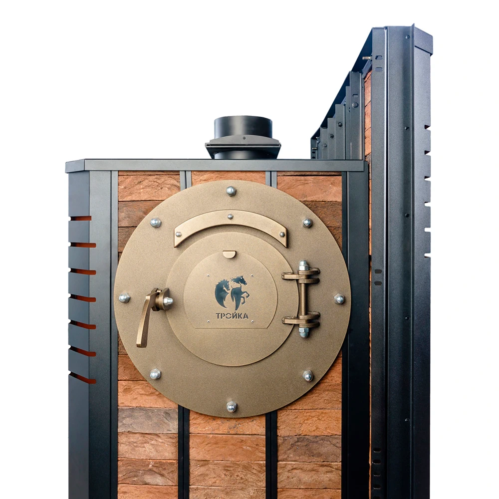 Печь «Тройка 08МК» (до 80 м³) — современное решение для русской бани с автоматическим управлением и мягким теплом кирпичной облицовки.