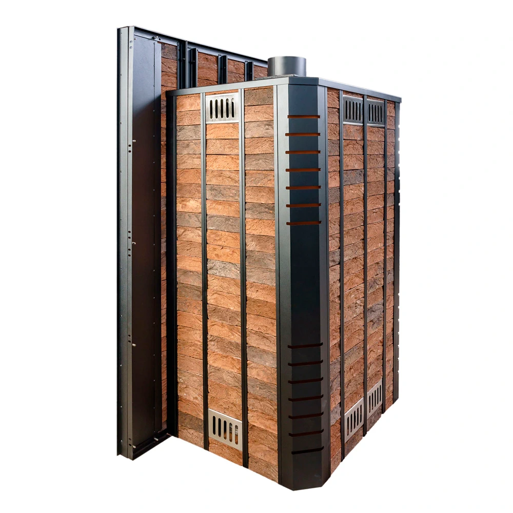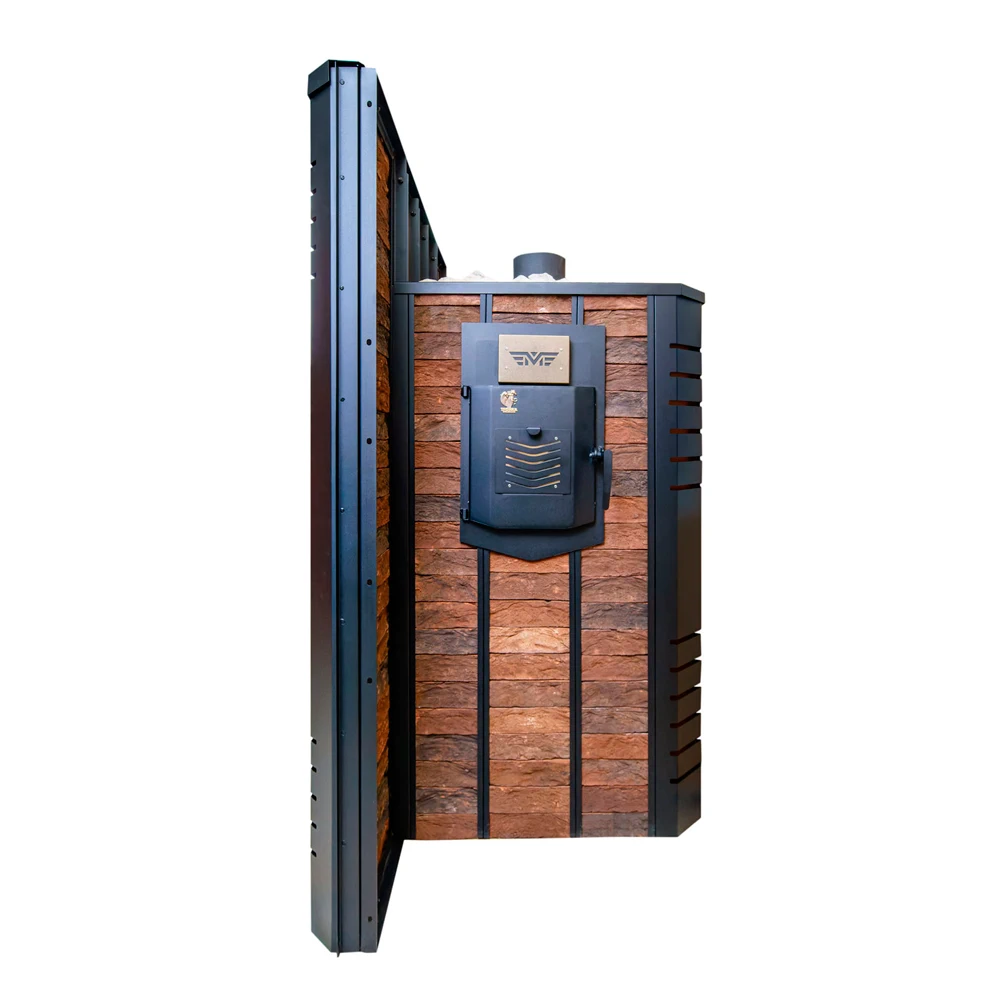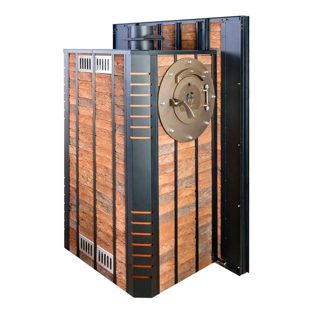 Транспортировочные колеса, паровая пушка, газовая горелка, каркас под облицовку, мультифункциональная дверца каменки, конвекционные дверцы каркаса |