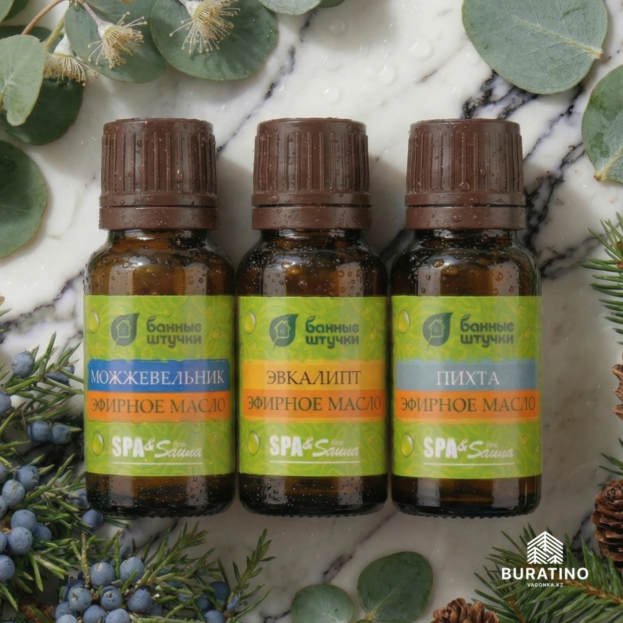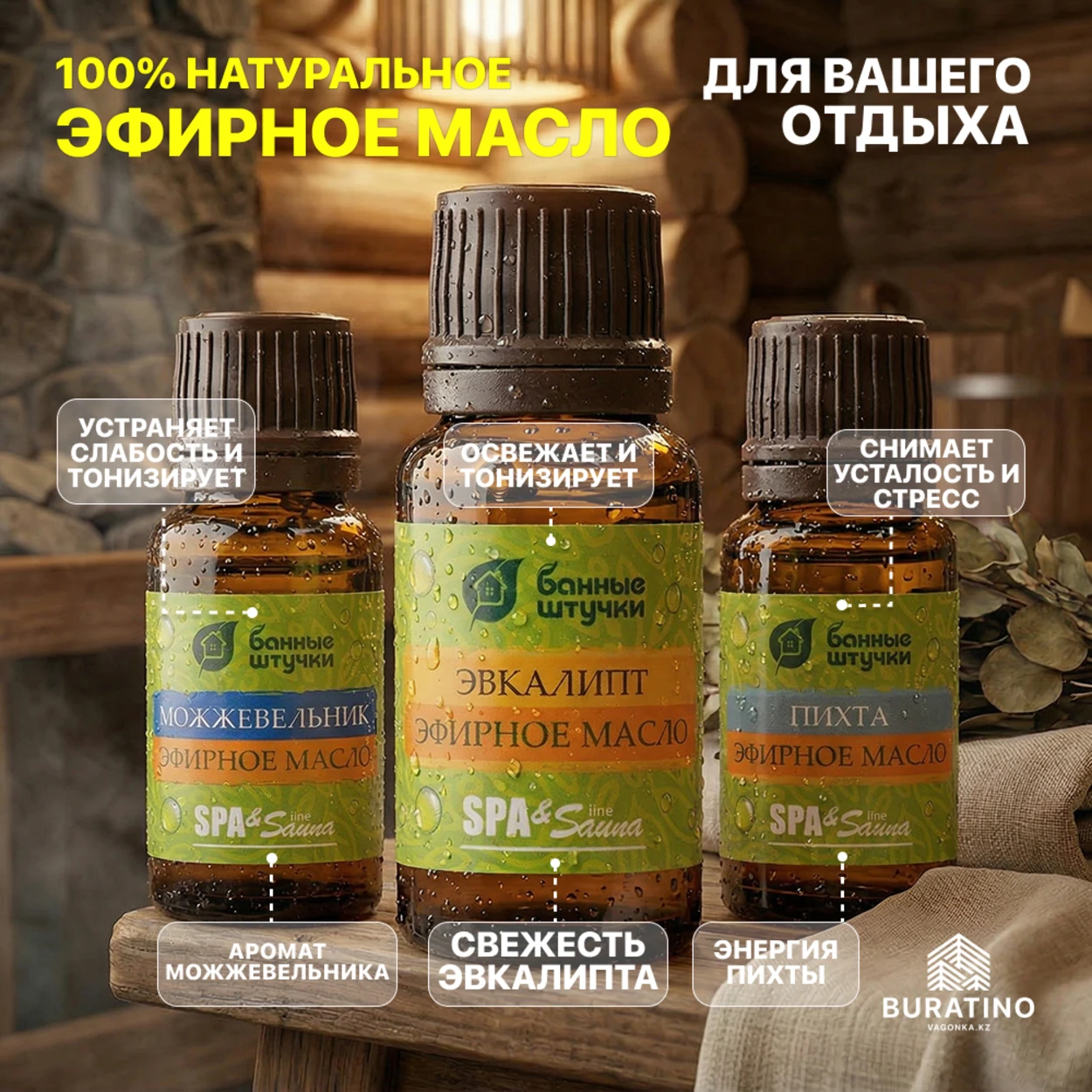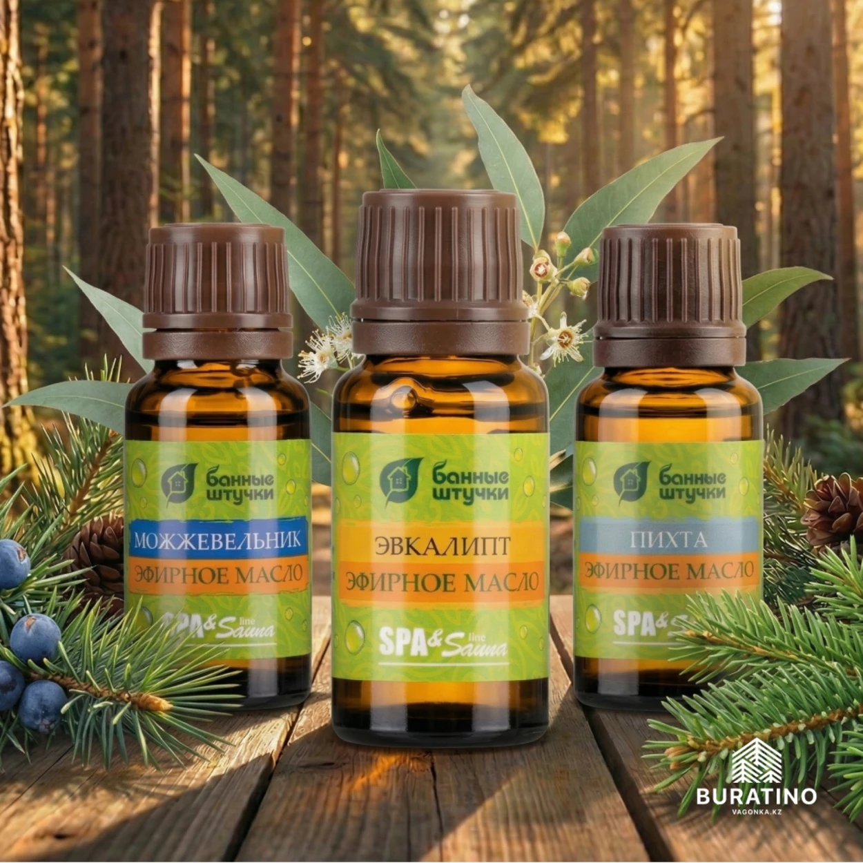 100% натуральные эфирные масла пихты, можжевельника, эвкалипта |