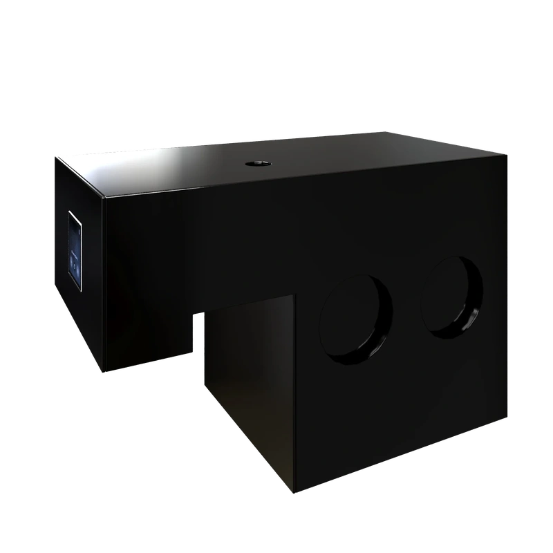Рекомендовано к расположению устройства на стойке, за потолком или на мебели. Доступна возможность подачи воды через трубу или бак с водой. Подключается к водопроводу. Корпус реализован из тонированного органического стекла, что гарантирует его долговечность и бесперебойную работу.